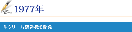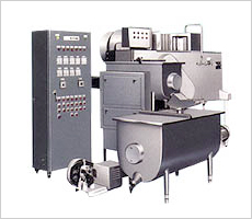 会社の設立時からのメイン機械で原料の調合からフリージング迄の一貫ラインです。その中でも特にアイスクリームフリーザーは昭和62年に全自動化され性能の優秀さで定評を得ています。